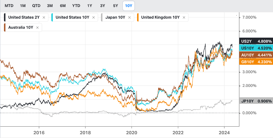 When I look at the world this way, I notice things. Like that most places in the world have the tightest monetary policy and highest bond yields they’ve had in years. Except for one place: Japan.