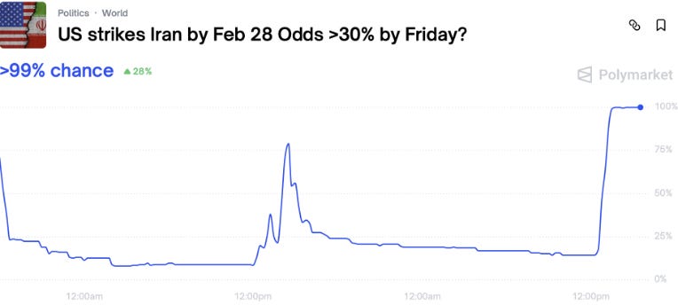 There are at least 50/50 odds of the US attacking Iran. The odds on Polymarket are 100%.